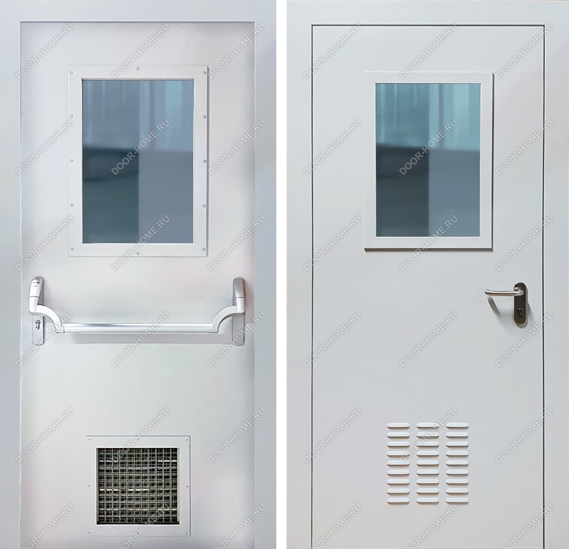 Противопожарная дверь со стеклопакетом, вентиляцией и ручкой «антипаника» Арт.DH-1414