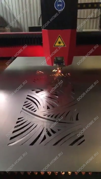 Наши производственные мощности позволяют выпускать входные металлические двери с вырезанным рисунком на полотне. Ниже представлен процесс обработки стального листа на оптоволоконном лазерном станке с ЧПУ.